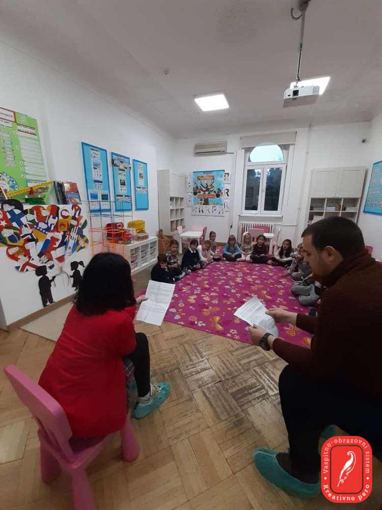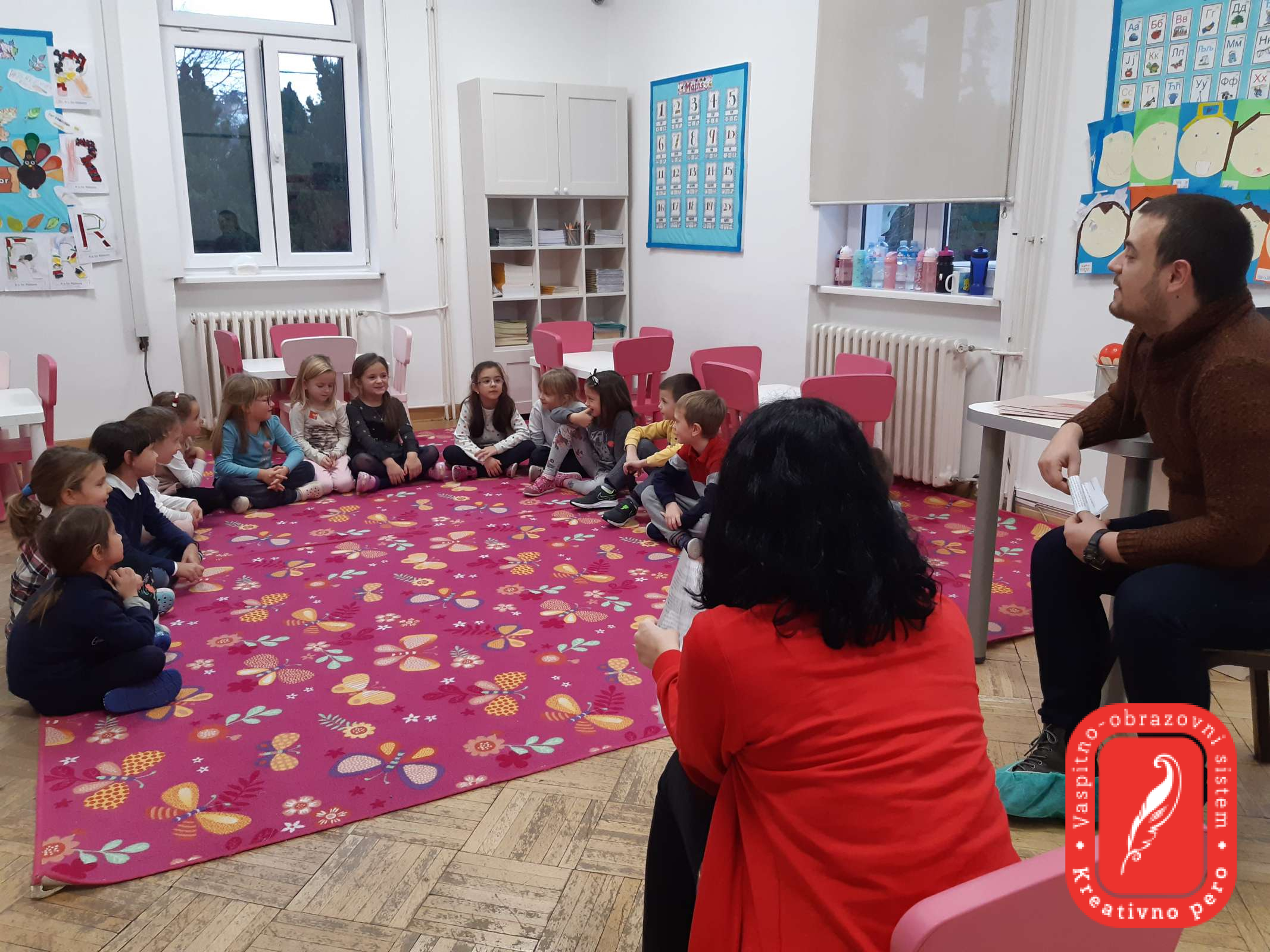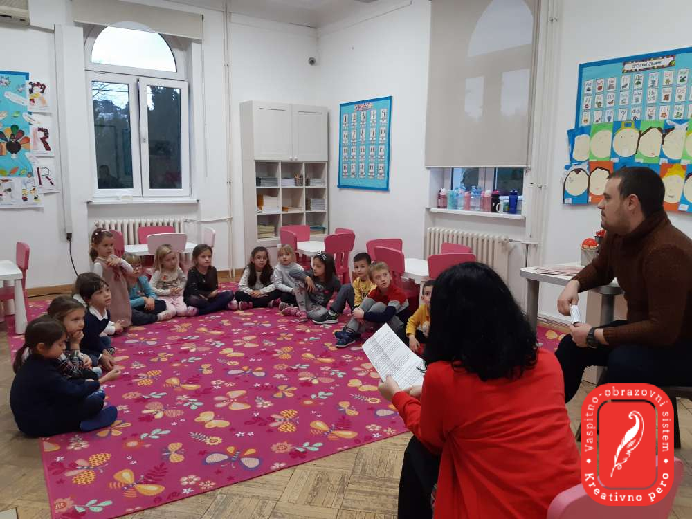 У уторак 3. децембра ученица осмог разреда Наталија Јовановић прочитала је свој креативни и оригинални састав на тему „Немушти језик“, након чега су деца из вртића илустровала њену причу. У наставку следи оригинална прича коју је написала Наталија, a коју прате фотографије овог дешавања као и оригинални цртежи као илустрација деце из вртића.