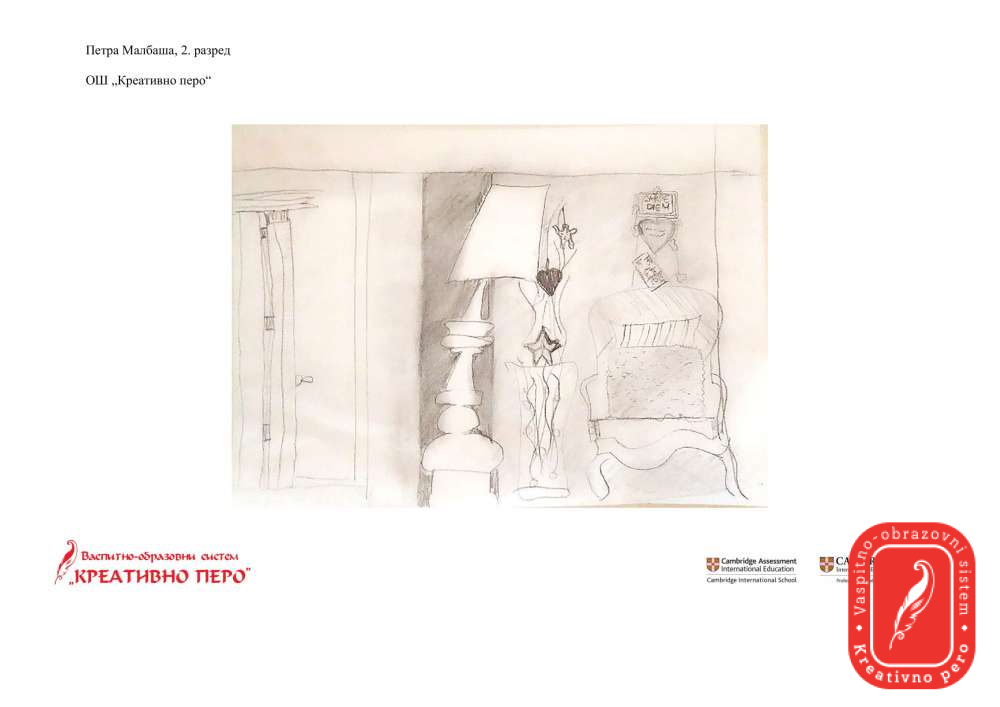Петра Малбаша је направила цртеж ентеријера у свом стану, трудећи се да нагласи сенке и учини га реалистичним.