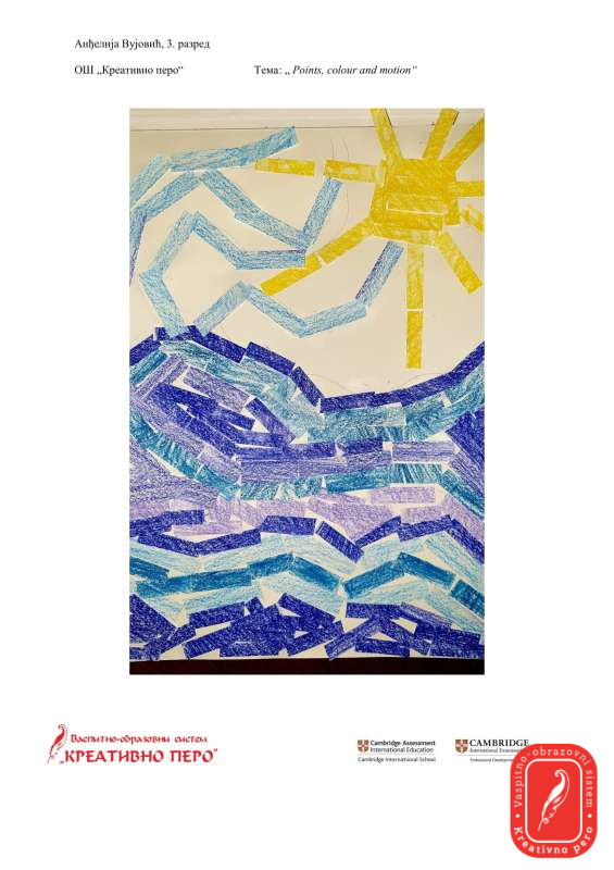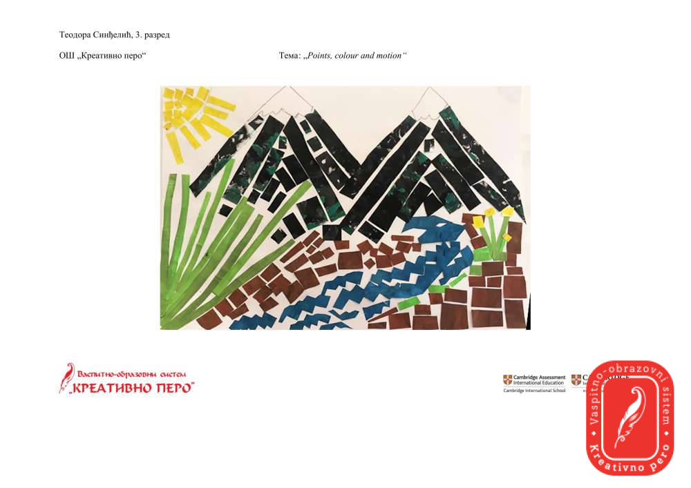 Теодора Синђелић и Анђелија Вујовић су одговориле на задатак “Points, colour and motion” интересантним радовима користећи колаж технику.
