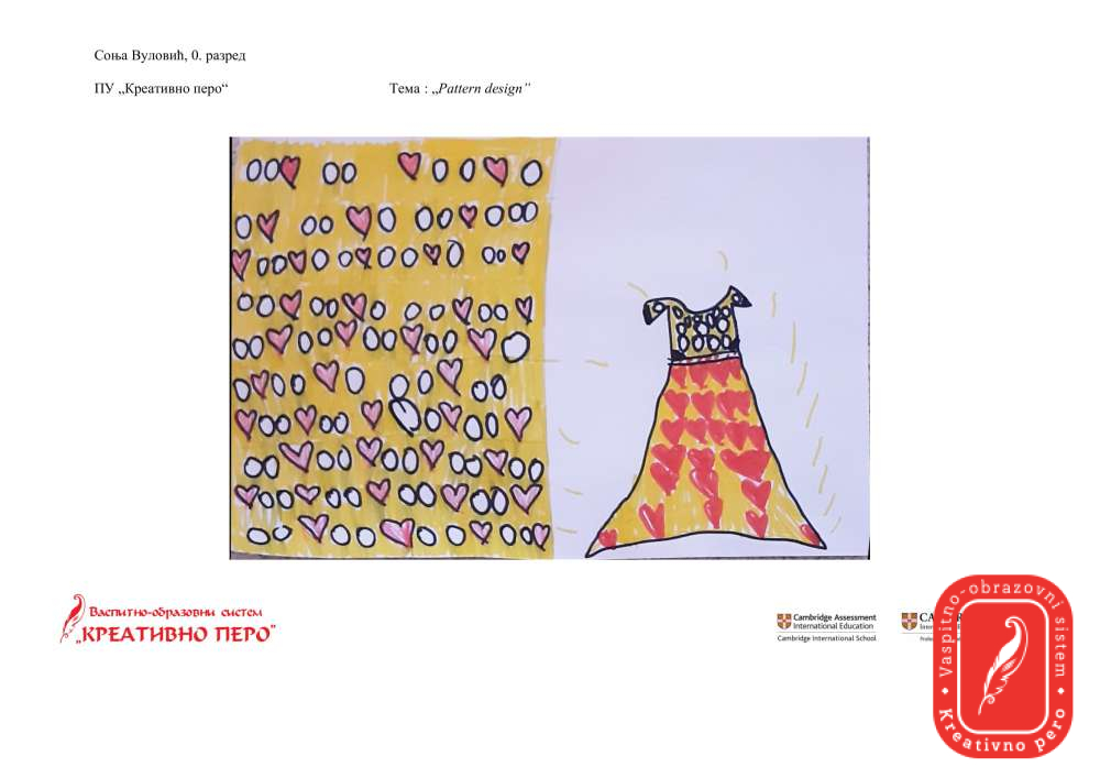 Соња Вуловић је одговорила на задатак "Pattern design" и направила свој, оригинални дизајн хаљине по узору на шаре које прави ирска дизајнерка Орла Кили.