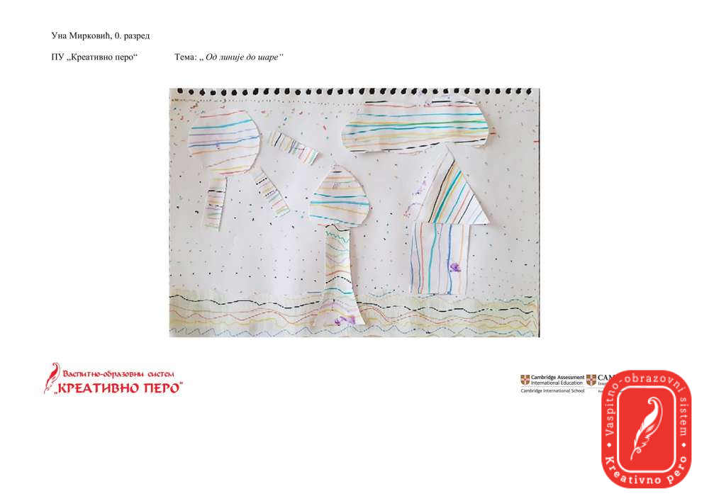 Јована Мирић, Уна Мирковић и Уна Мартиновић су одговориле на задатак "Од линије до шаре" и направиле колаж од папира са различитим текстурама и линијама.